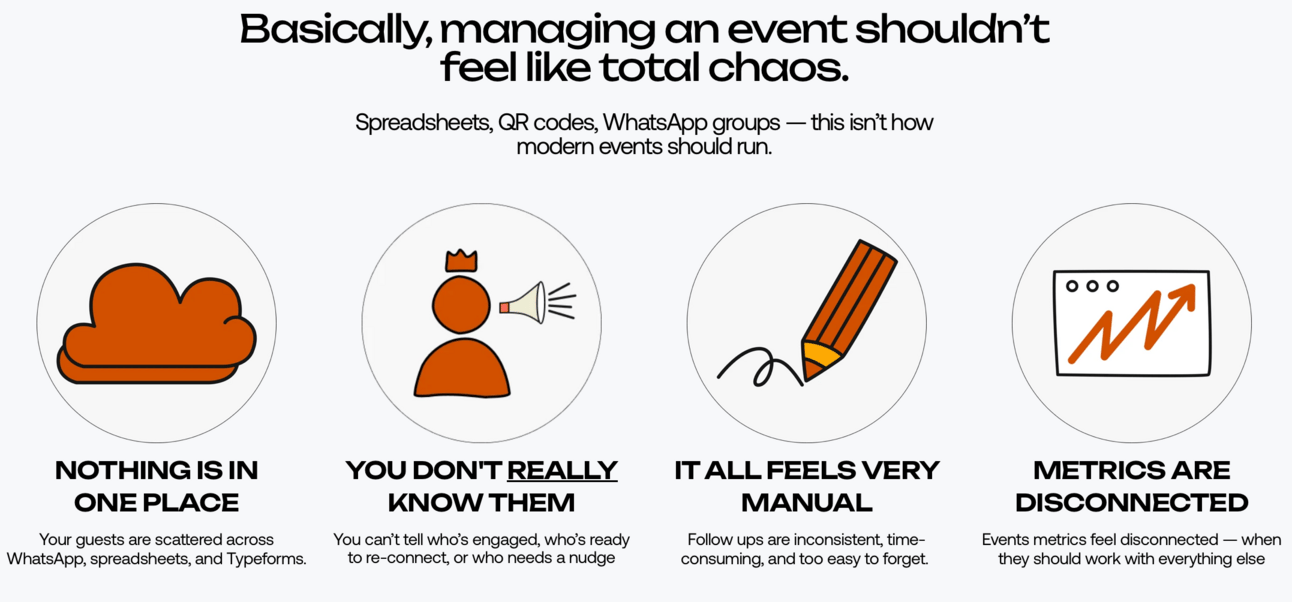They showed that simple, beautiful software can thrive with professional users who hate complexity. We took that same design-first ethos and applied it to event marketing.